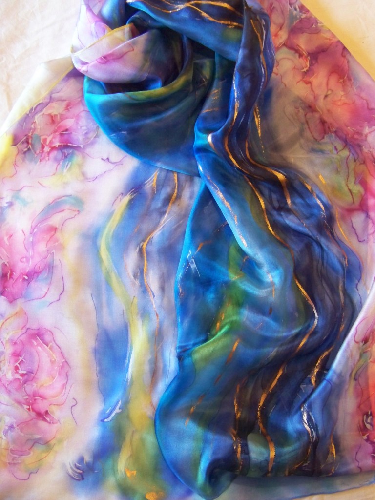 Fular de seda natural, pintado a mano, 45×180 cm, Maria Evseeva