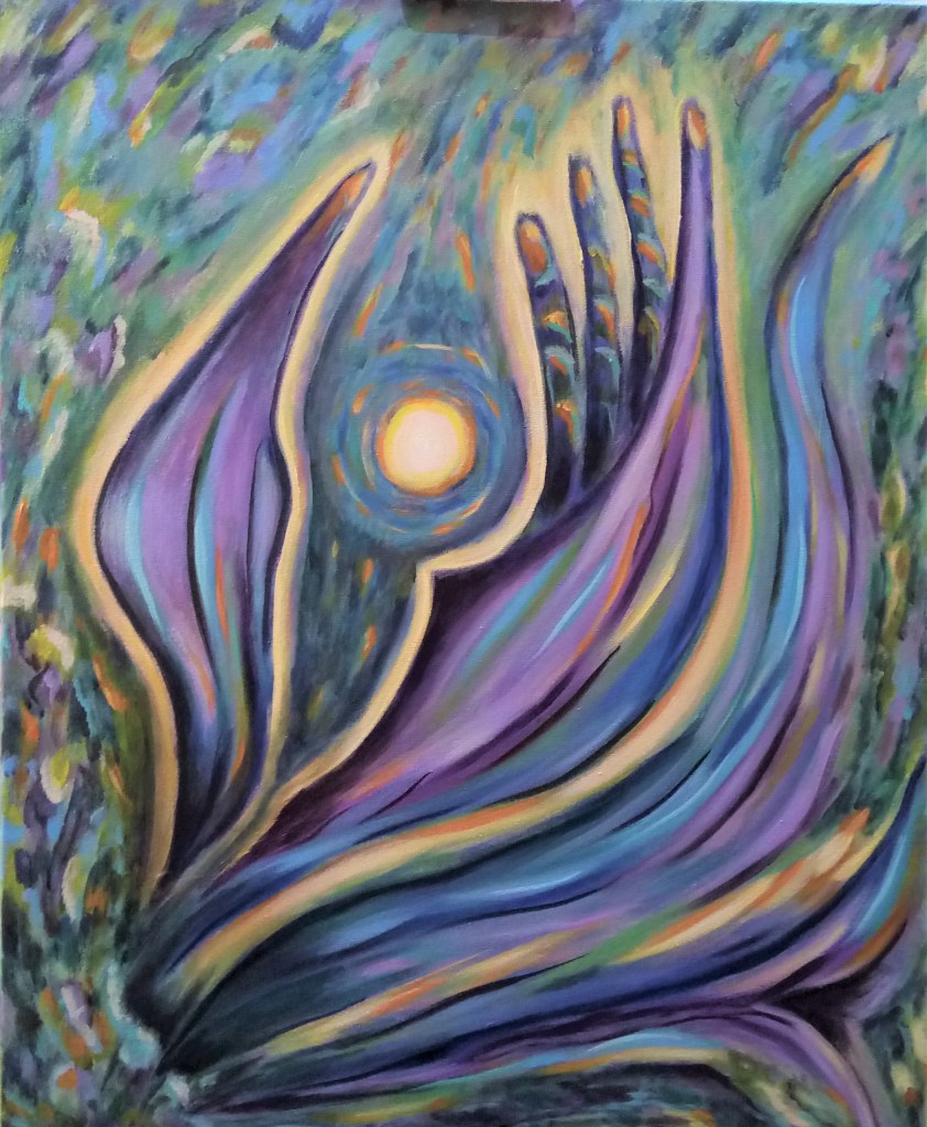 «Energía en tus manos» 2021, acrílico, 61×50 cm Maria Evseeva NO DISPONIBLE
