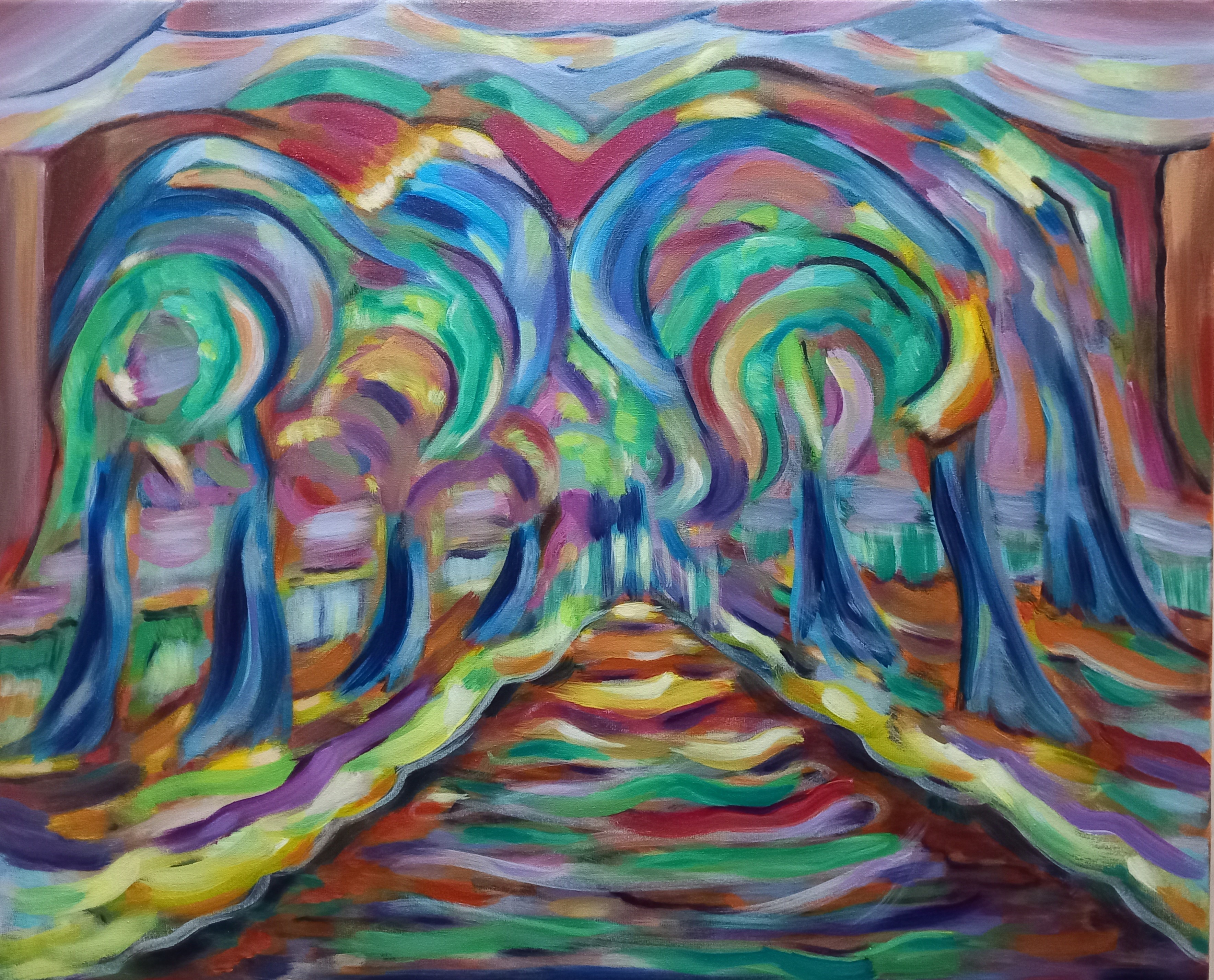 Camino II, acrílico sobre lienzo, 50×61 cm, 2025 Maria Evseeva «Lo que parece un obstáculo en tu camino, puede resultar una sombra de algo».