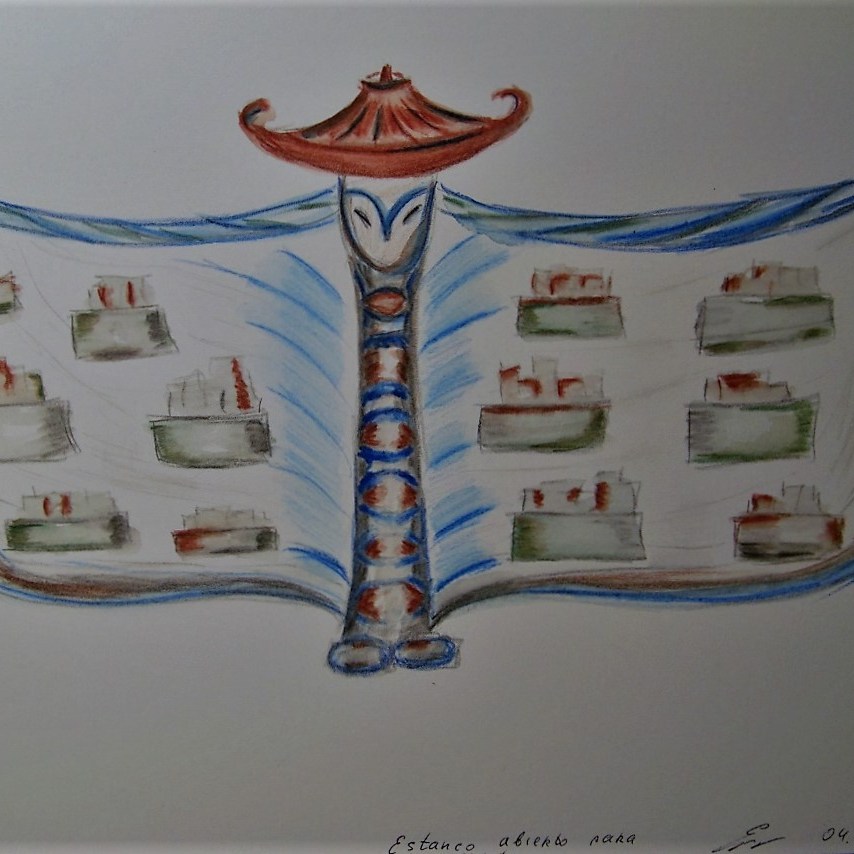 Maria Evseeva, dibujo, tinta, acuarela, taller de escenografia de Adriana Straijer basado en biografia de Julio Cortazar