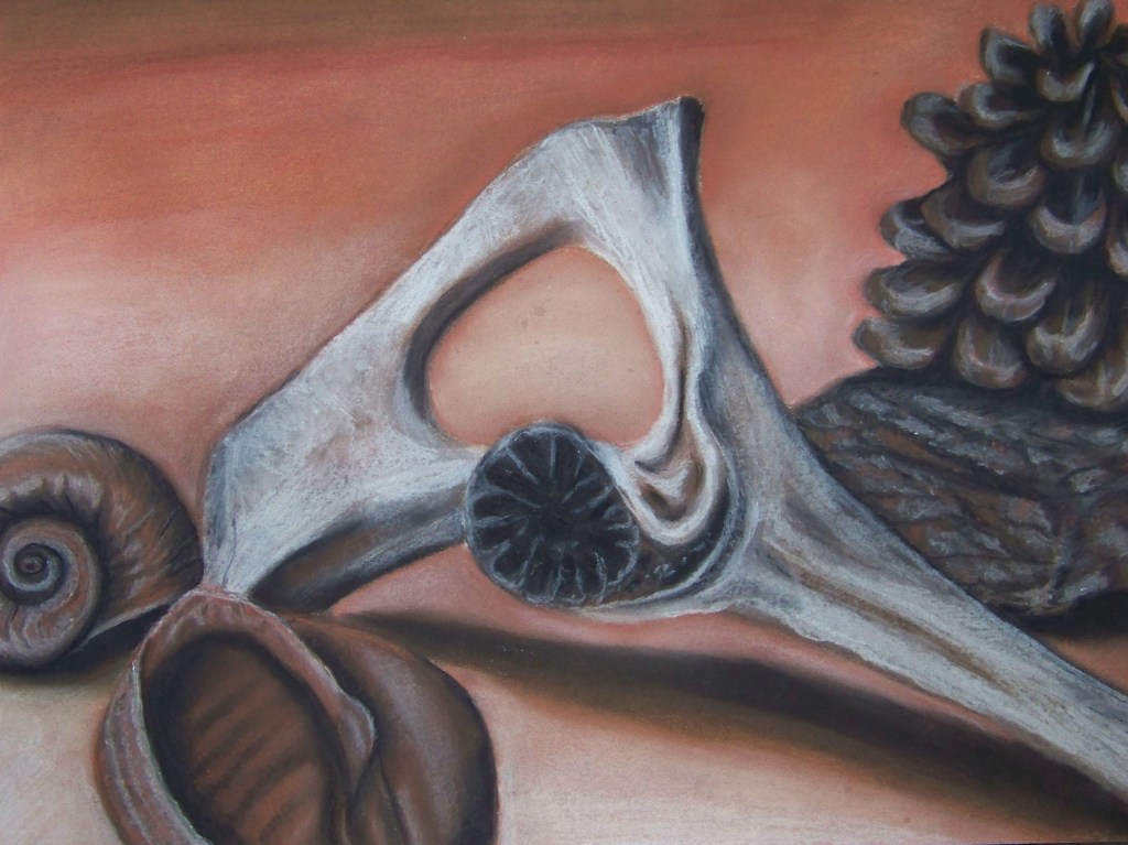 Maria Evseeva, bodegon, papel, sanguina, creta blanca Taller El Visor