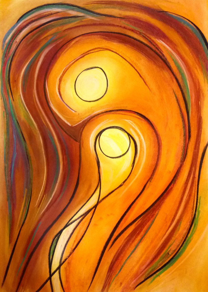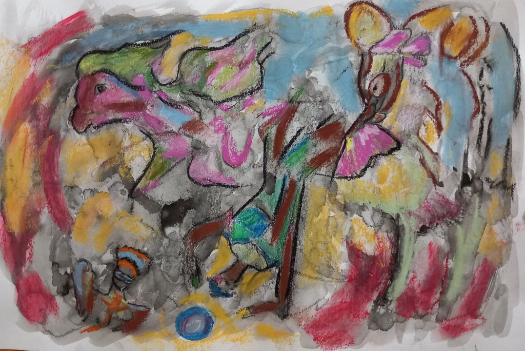 Dibujo, pastel, tinta china, papel, 30×45 cm «Susana y….», 2025