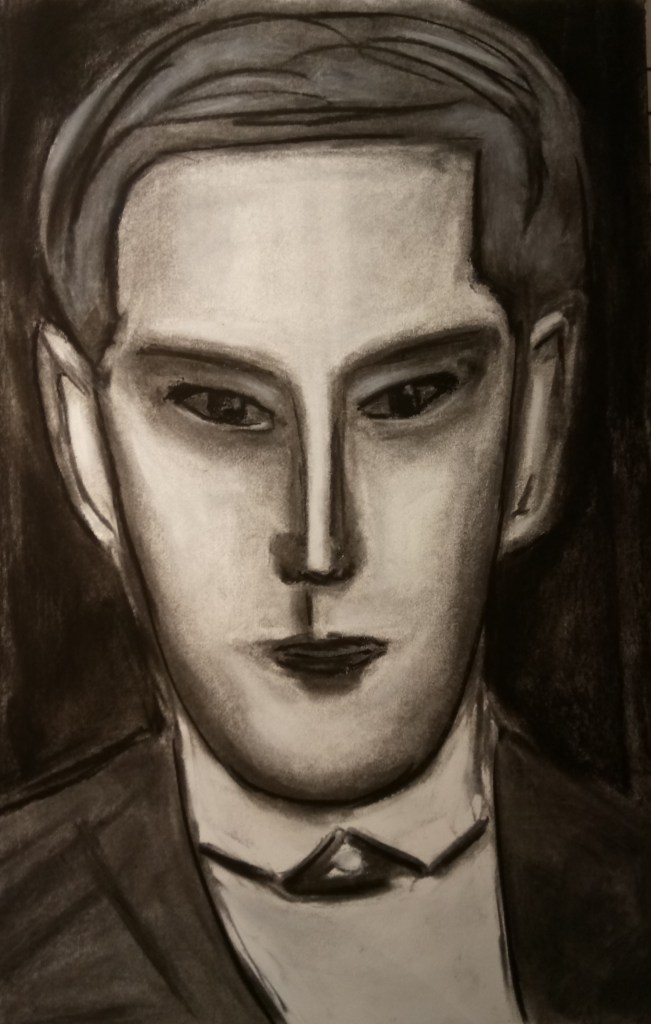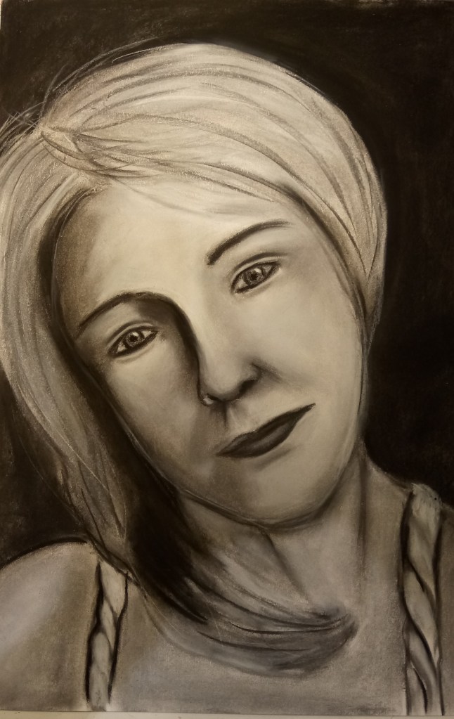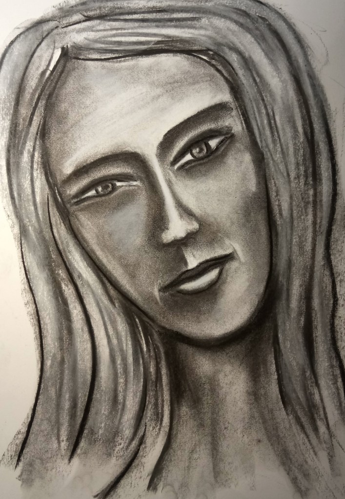 Retrato, carboncillo, carbon prensado, Taller El Visor, 2023
