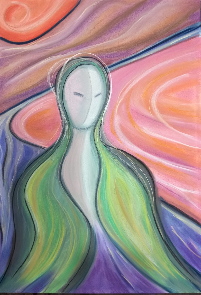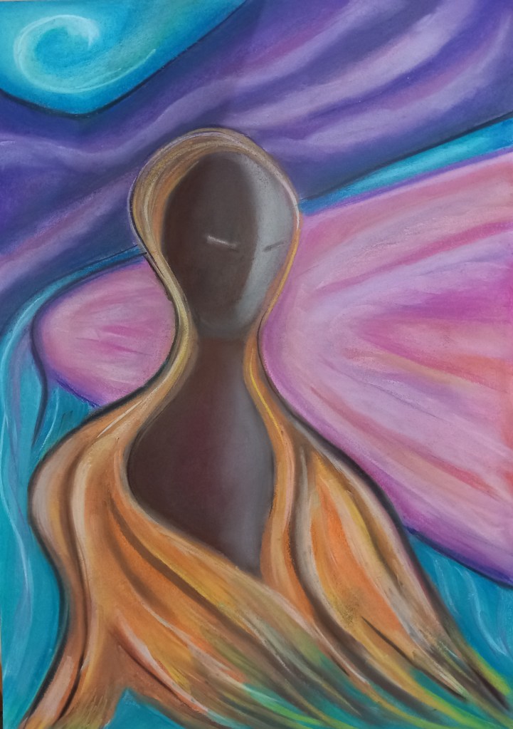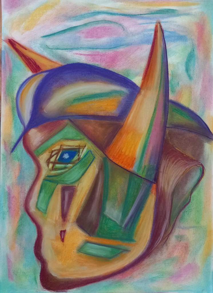 Pastel, 51×36 cm, 2023, «Retrato abstracto», «El tiempo que se va»