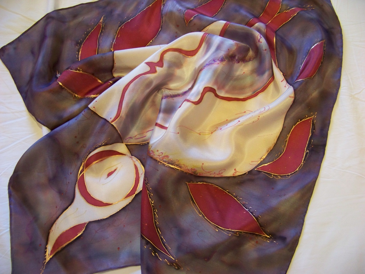 Pañuelo de seda 100 % natural 70×70 cm, pintado a mano, obra única. Habotai